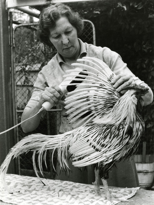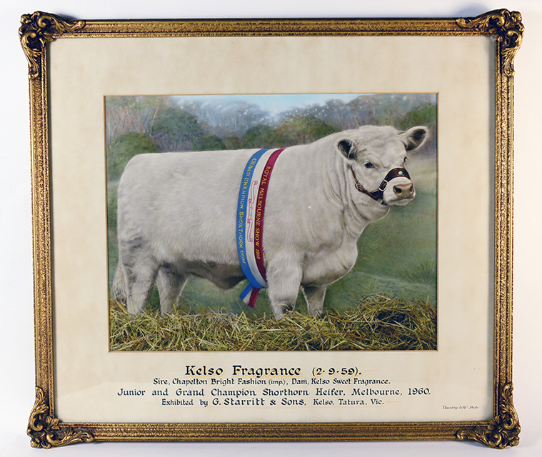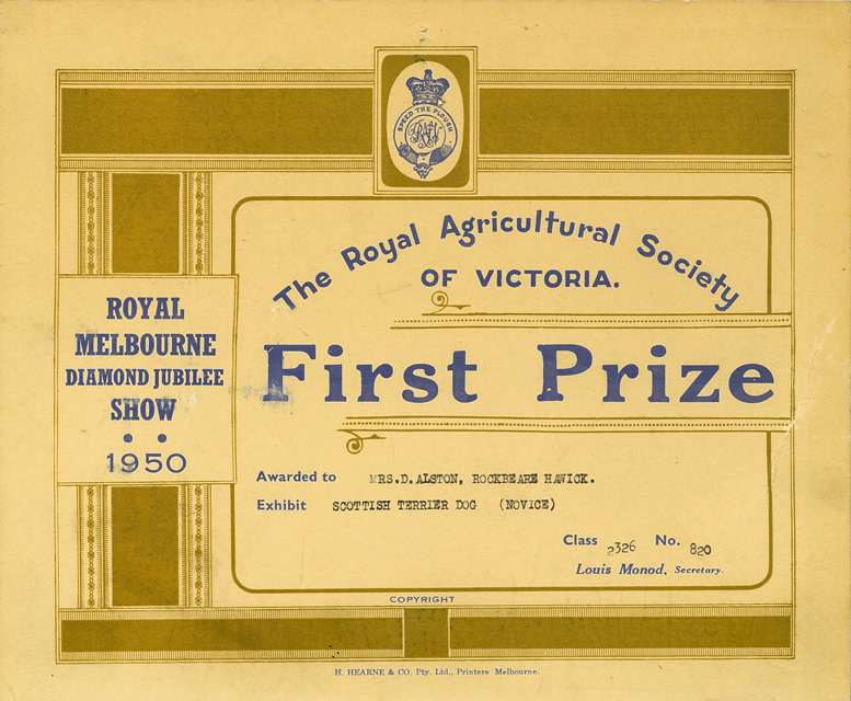 A panel of judges select the Best in Show craft award, known as the Florence Monod Memorial Trophy, from the best exhibit in each craft class in the Art, Craft & Cookery competition at the Royal Melbourne Show. Judges, left to right: Mr J B Parry, (RASV), Mrs G Starritt, Lady Murray, Mr G Starritt (President RASV)