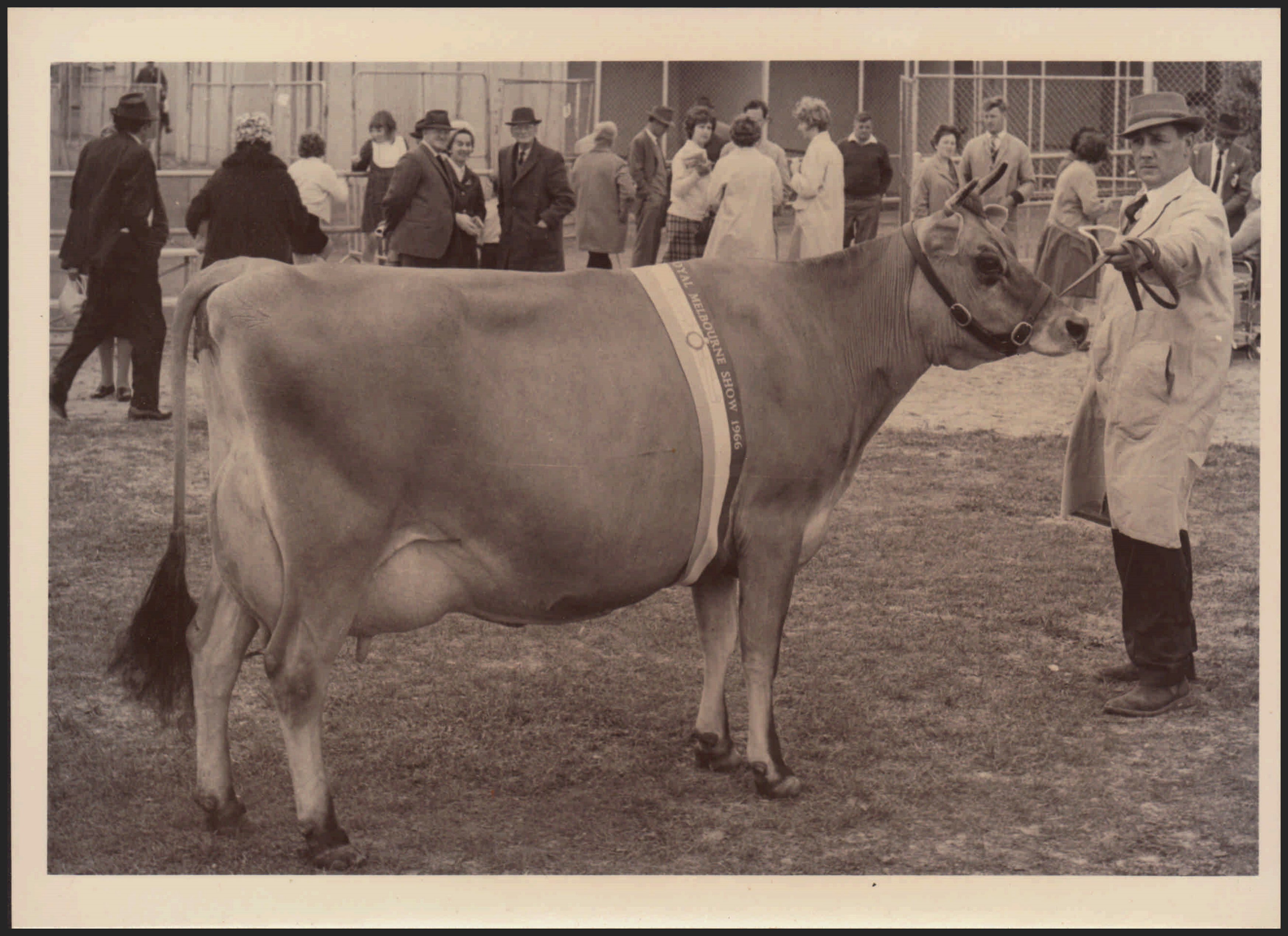 This item is a part of a larger collection of 4,500 Frank Johnson photographs and negatives donated to Melbourne Royal by Frank Johnson’s daughter, Francis Beatty Wallace in 2016. This collection spanning from the 1930s to the 1980s holds important social and historical significance in preserving and sharing Victoria’s agricultural history and community. The photographs capture the local, regional, and state’s shared relationships developed through agriculture and the importance of farming and husbandry to the population and development of Australia.