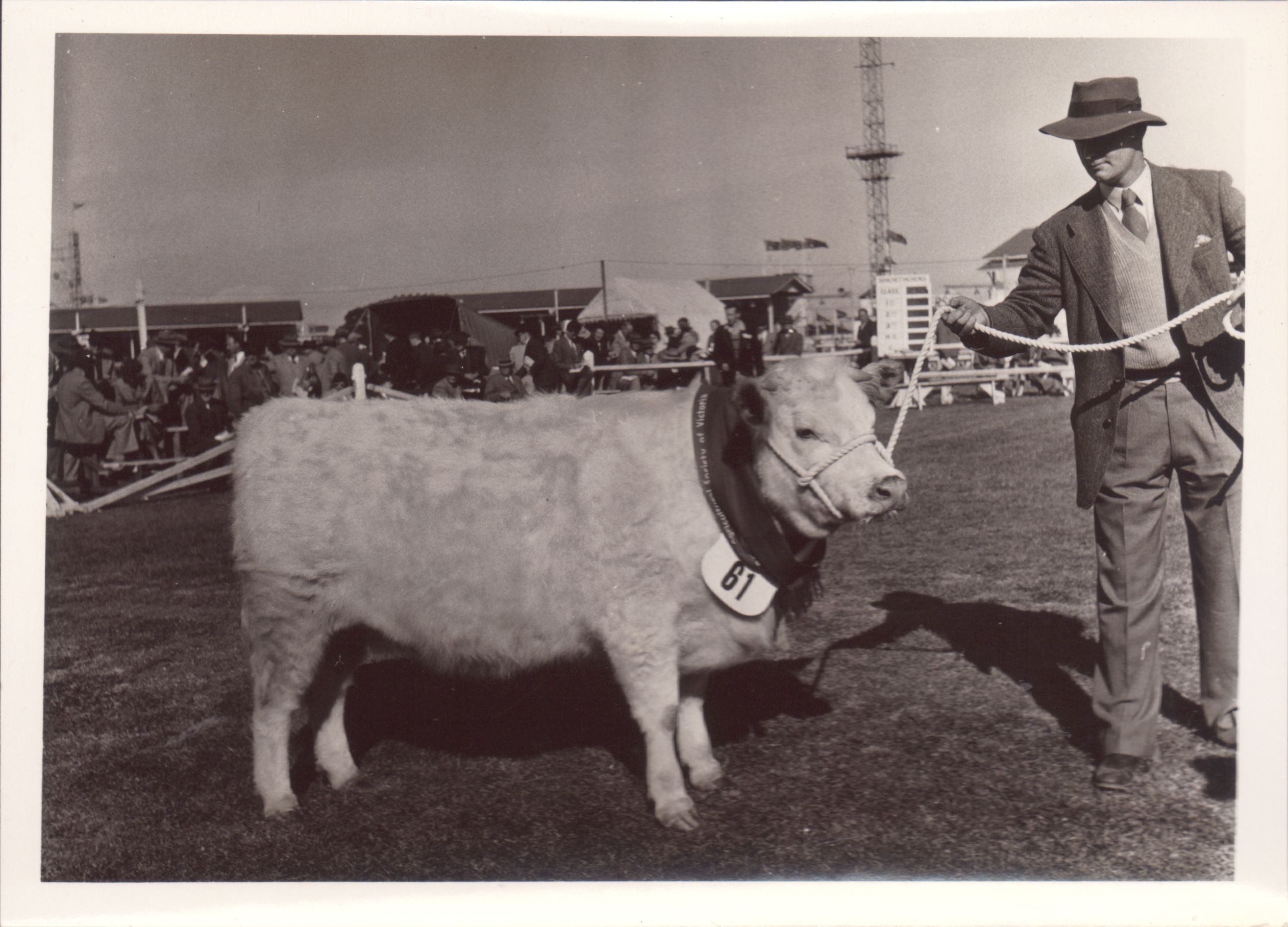 This item is a part of a larger collection of 4,500 Frank Johnson photographs and negatives donated to Melbourne Royal by Frank Johnson’s daughter, Francis Beatty Wallace in 2016. This collection spanning from the 1930s to the 1980s holds important social and historical significance in preserving and sharing Victoria’s agricultural history and community. The photographs capture the local, regional, and state’s shared relationships developed through agriculture and the importance of farming and husbandry to the population and development of Australia.