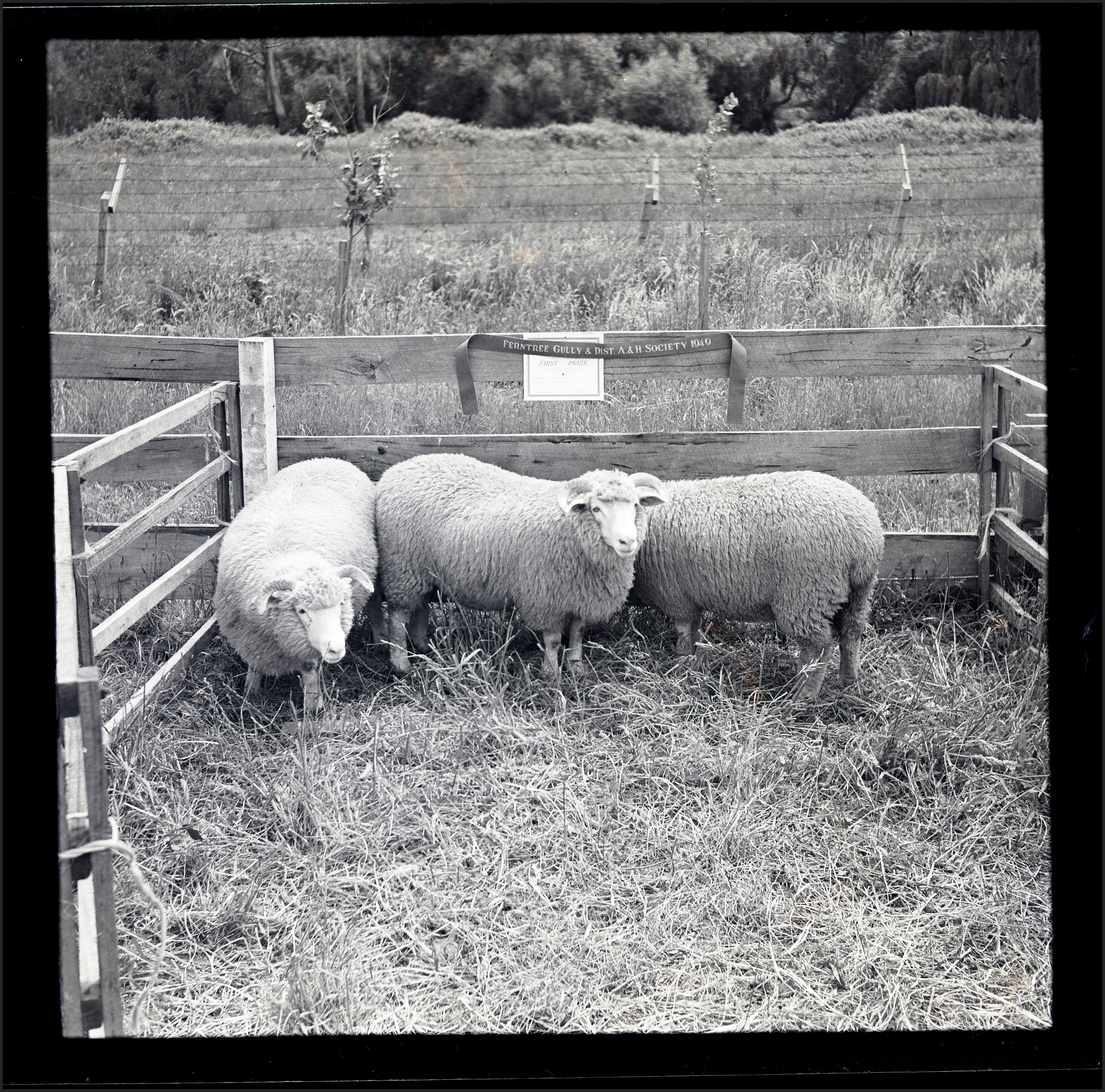 This item is a part of a larger collection of 4,500 Frank Johnson photographs and negatives donated to Melbourne Royal by Frank Johnson’s daughter, Francis Beatty Wallace in 2016. This collection spanning from the 1930s to the 1980s holds important social and historical significance in preserving and sharing Victoria’s agricultural history and community. The photographs capture the local, regional, and state’s shared relationships developed through agriculture and the importance of farming and husbandry to the population and development of Australia.